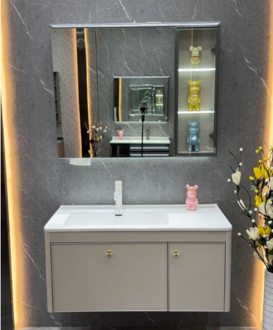 705 Элегантная керамическая раковина, алюминиевые кромки и умный зеркальный шкаф с сенсором— всё для вашего комфорта!