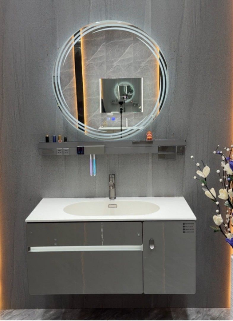 Цельная титаново-каменная раковина (прочность выше, чем у керамики — материал не боится ударов и сколов, устойчива к царапинам, не реагирует на моющие средства, за счёт содержания титана поверхность препятствует размножению микробов); Брендовая фурнитура — стильный и долговечный выбор для вашей ванной комнаты; Корпус из массива дерева без покраски — идеальный выбор для современной ванной комнаты. Размеры: