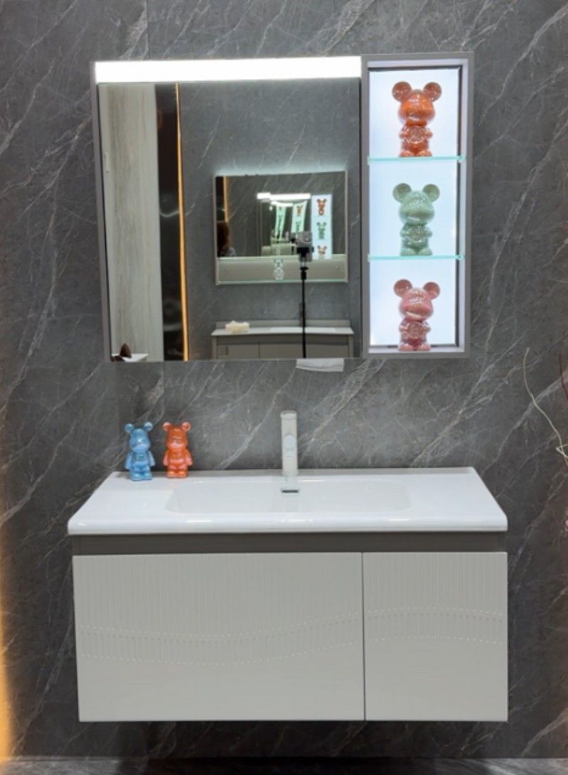 Высококачественная цельная керамическая раковина; ; Интеллектуальное зеркало с сенсором; Дверцы с глянцевой лаковой отделкой Корпус из многослойной влагостойкой ламинированной плиты (без лакировки). Размеры:
