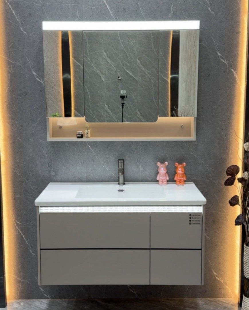 Высококачественная цельная керамическая раковина; ; Интеллектуальное зеркало с сенсором; Корпус из многослойной влагостойкой ламинированной плиты (без лакировки). Размеры: