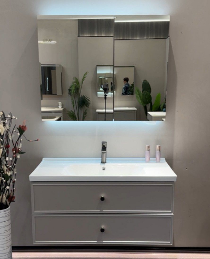 988 Элегантная керамическая раковина и стильный зеркальный шкаф для косметики — всё для вашего комфорта