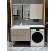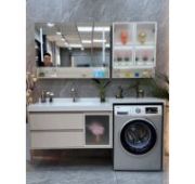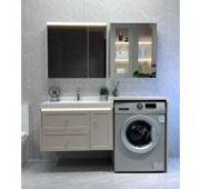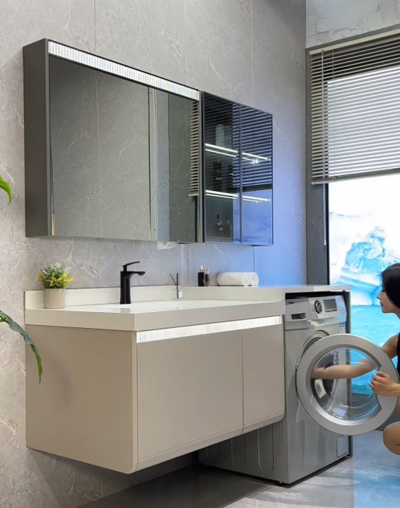 L10 Подвесная тумба с раковиной, зеркальный шкаф и столешницей для стиральной машины. Цельнокерамичная раковина с бесшовной отделкой из каменной плиты;