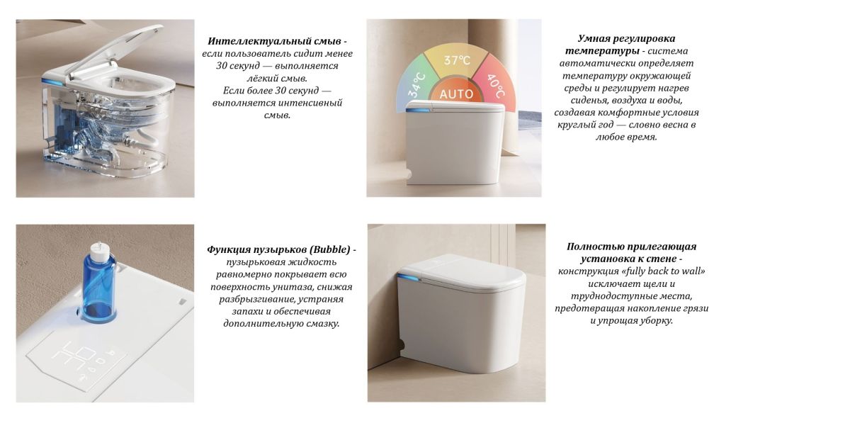 Интеллектуальный смыв - если пользователь сидит менее 30 секунд — выполняется лёгкий смыв.